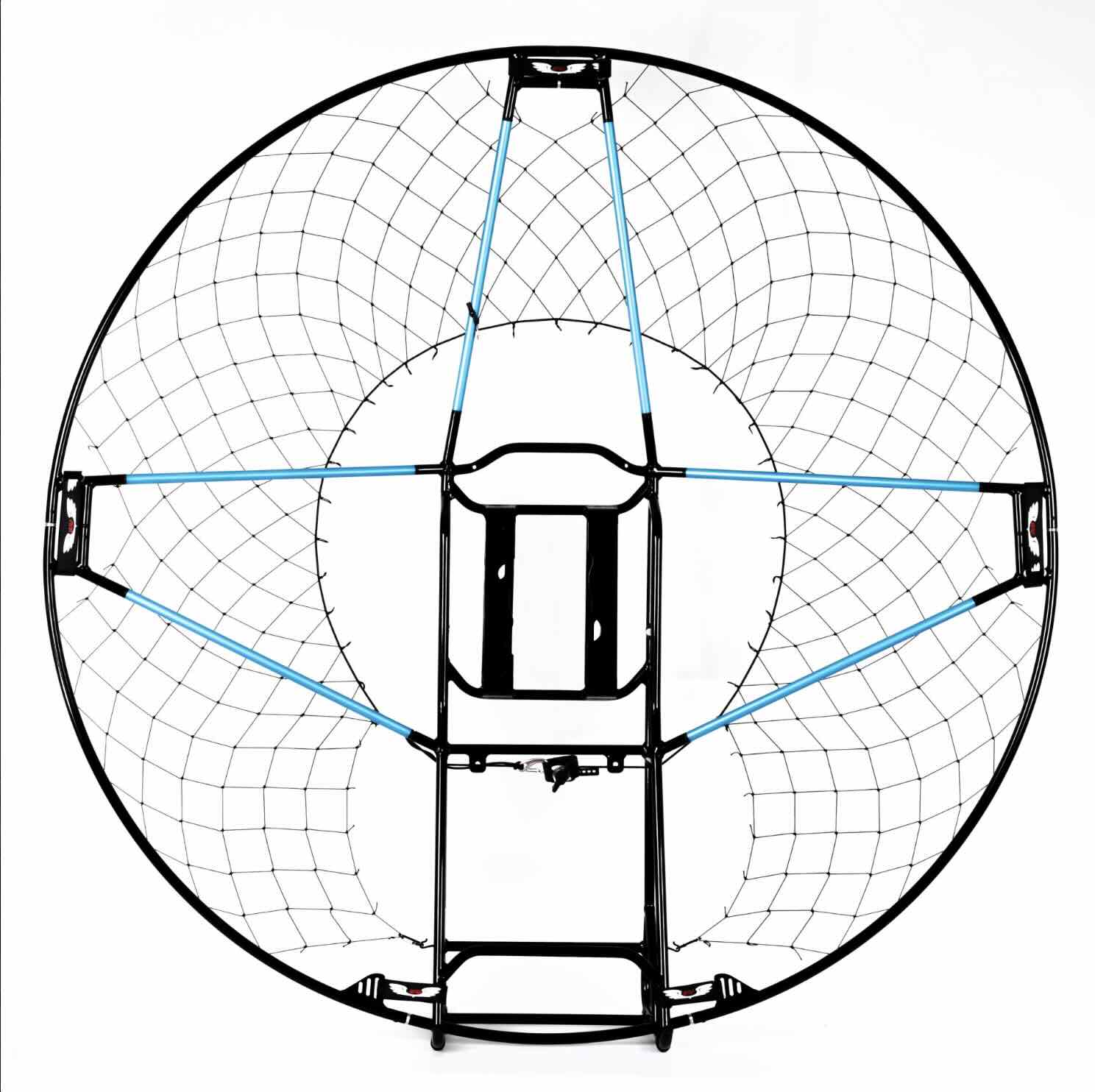 De kooi is gemonteerd aan het frame met hiertussen aluminium buisjes en geen carbon sticks. De gedachte hierachter is tweeledig; qua gewicht is dit aluminium lichter dan carbon maar niet sterker; in geval van een serieuze impact kan zo’n buisje de energie absorberen door te buigen. Ja…. carbon is sterker maar zal tijdens een impact de energie overdragen aan het frame met als gevolg dat dit vervormd. Eventuele valschade is dus meestal in een handomdraai op het veld op te lossen.
