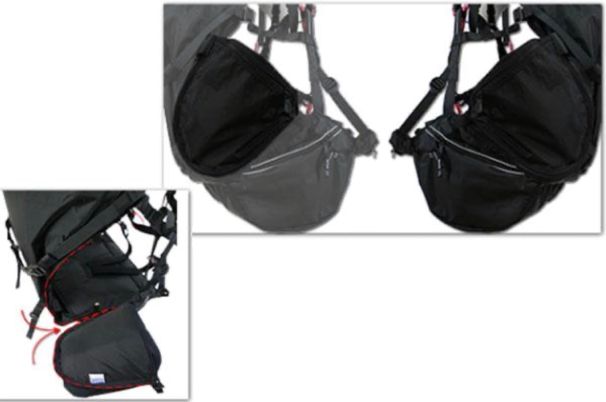 onmisbare accessoire voor je paramotor harnas. Een afsluitbaar zijvak om de spullen die je mee wilt nemen tijdens je vlucht veilig op te bergen. Wil je spullen meenemen die je meteen onder de hand wilt hebben kies dan voor een cockpit welke je voor je monteert tussen de karabiners. Hier kun je je instrumenten op monteren. In de opbergruimte daaronder is ruimte beschikbaar voor een bijv. een loadbank, lunchpakket, drinkzak en andere meer of minder noodzakelijke items.