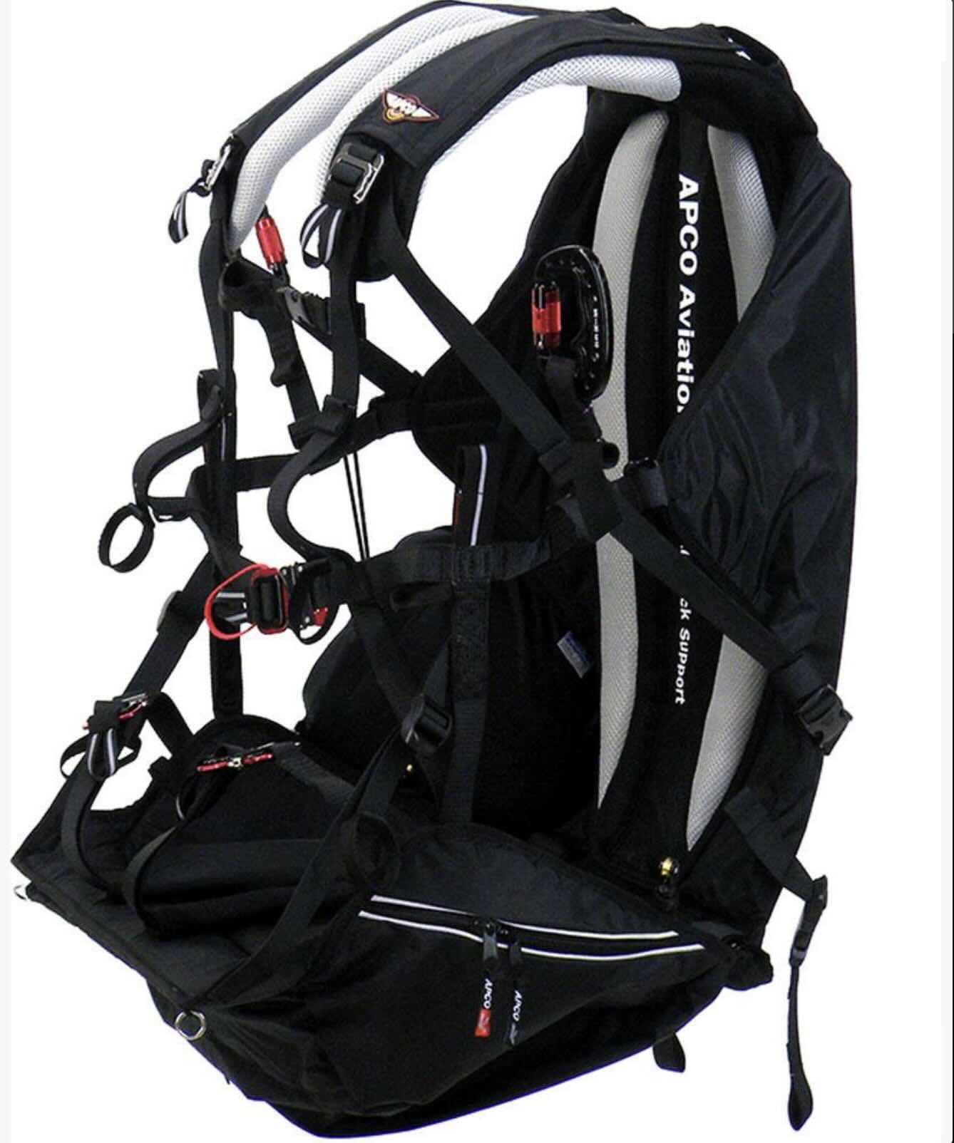 De vorm is verfijnd voor extra comfort. Er is een grote voorklep voor meer bewegingsvrijheid en ondersteuning tijdens de vlucht.Het gewicht van de zitting is laag door gebruik te maken van een lichtgewicht polycomb-materiaal voor de zitting én de voorklep. We gebruiken het Apco paramotor harnas niet voor niets op al onze schoolmotoren.